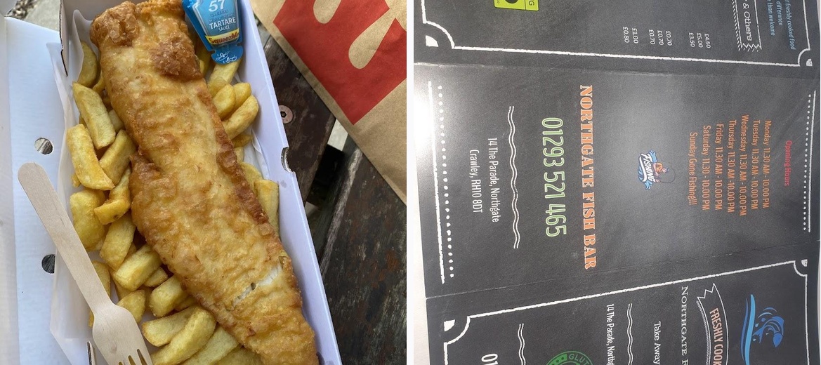 Northgate Fish Bar deserves a spot on your dining list for its exceptional combo of quality food and welcoming service. Perfect for lunch or dinner, the restaurant is particularly busy on Fridays at 5 PM, making it essential to plan ahead if visiting during that time. For a more relaxed experience, stop by early in the week around lunchtime. Bring the kids; they offer a special menu just for them, adding to the family-friendly vibe of the place. Be sure to try the fresh fish and iconic chips; they are often cited as some of the best in Crawley. Make it an adventure—grab your meal, find a park nearby, and enjoy your feast in the great outdoors!